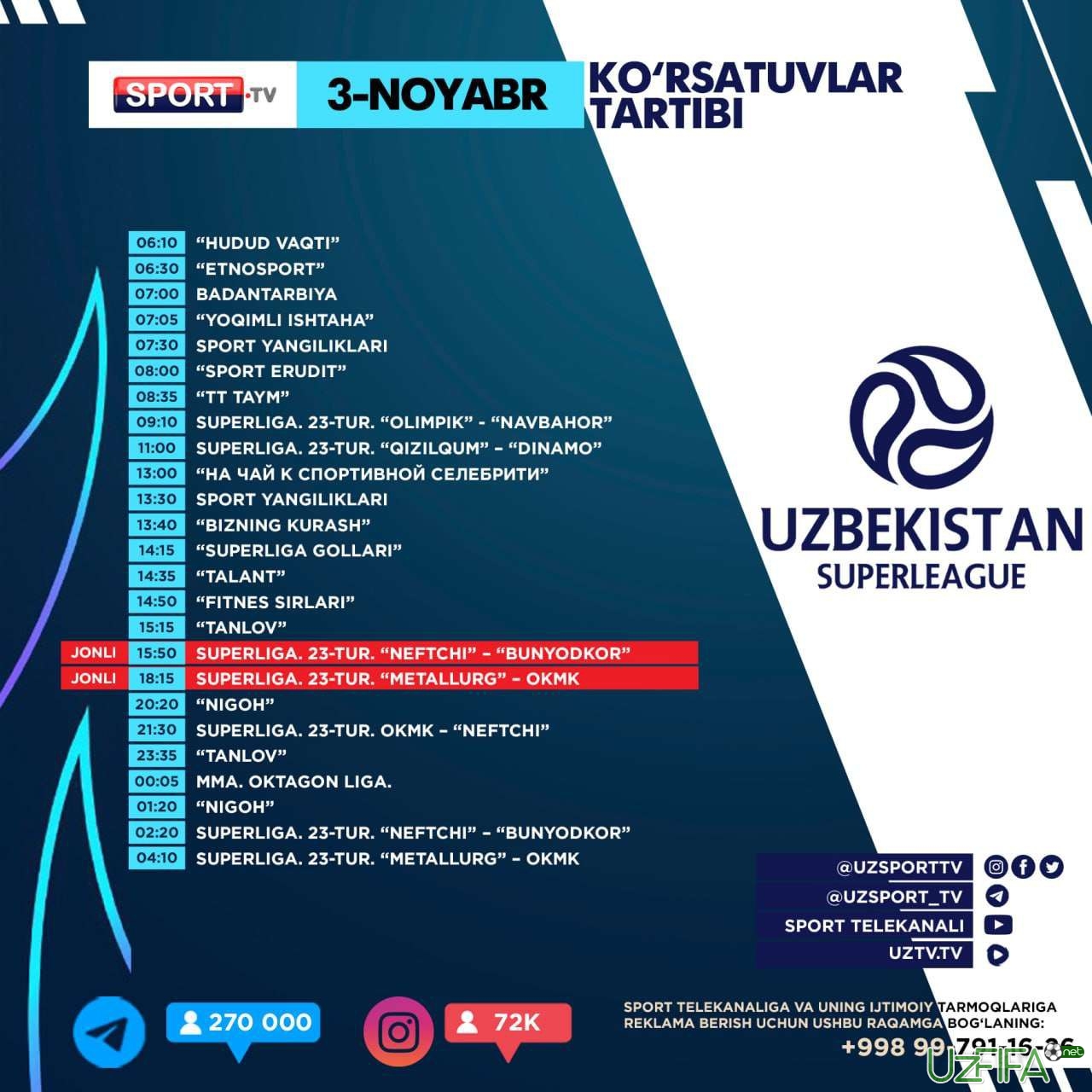 Sport TV'da 3 noyabr kuni 2 ta jonli futbol translyasiyasi bor
