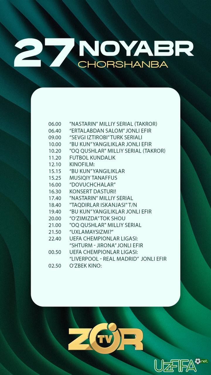Zo'r TV 27 noyabr kuni YECHLning qaysi o‘yinlarini translyasiya qiladi?