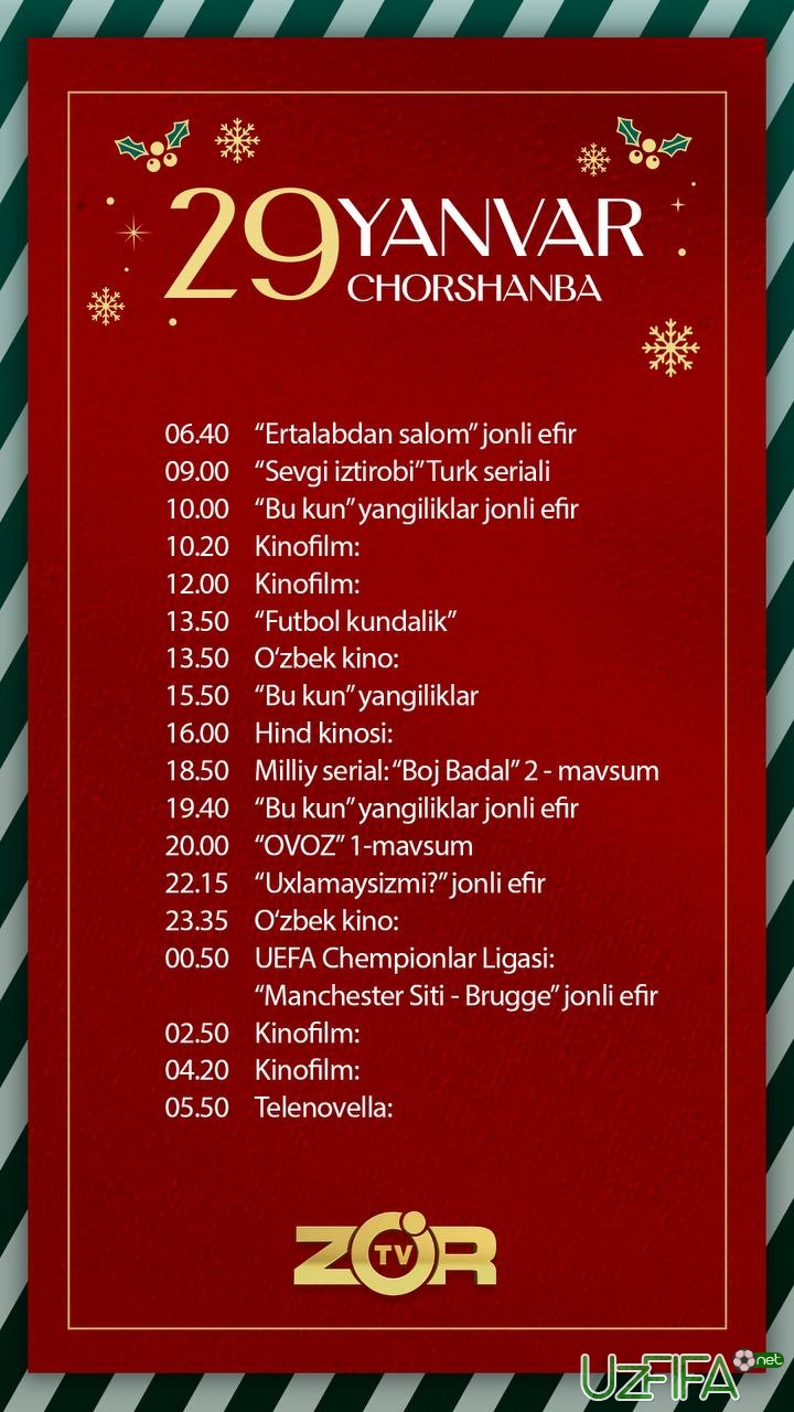 Zo'r TV 29 yanvar YECHLning qaysi o‘yinini jonli translyasiya qilishi ma’lum bo‘ldi
