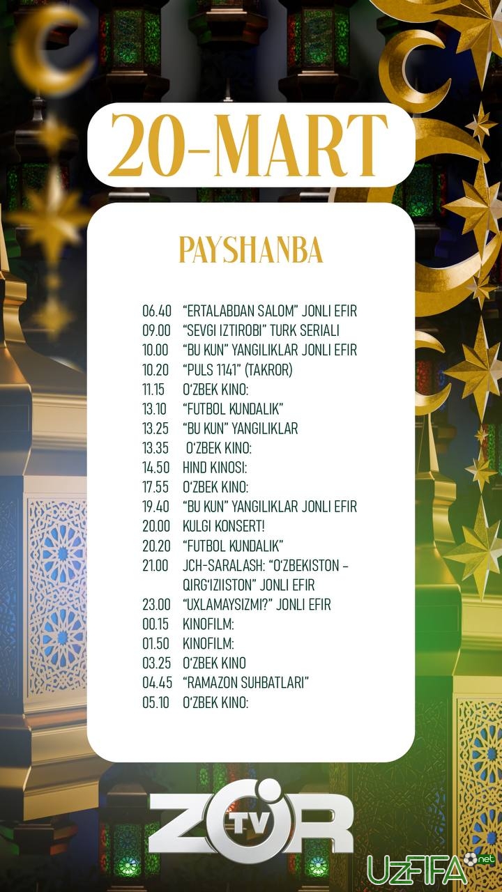 Zo'r TV 20-mart kuni O‘zbekiston - Qirg‘iziston o‘yinini jonli translyasiya qiladi