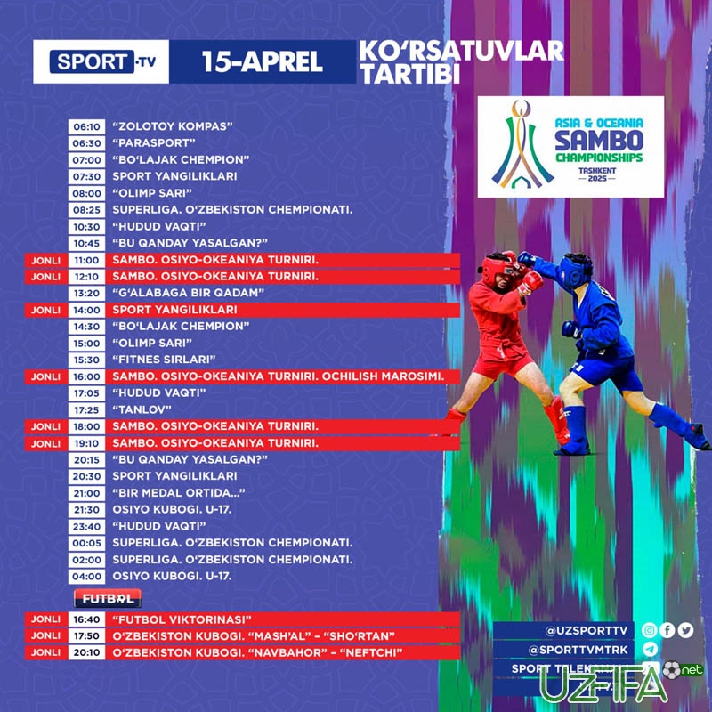 Sport va Futbol telekanallarida 15-aprel kuni 2 ta jonli futbol translyasiyasi bor