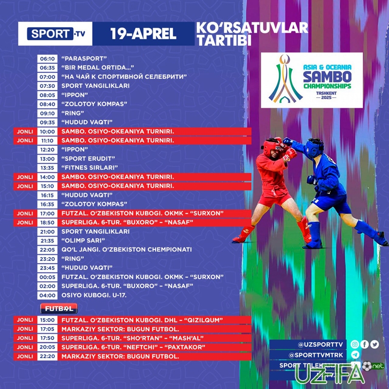 Sport va Futbol telekanallarida 19-aprel kuni bir nechta futbol va futzal translyasiyalari bor