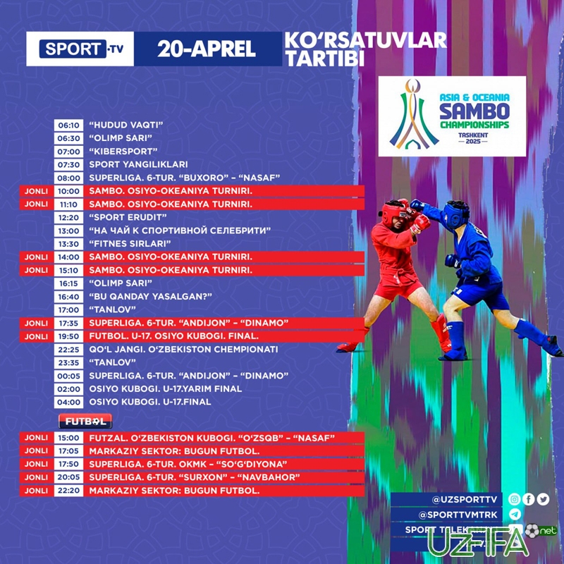 Sport va Futbol telekanallarida 20-aprel kuni 4 ta futbol translyasiyasi bor