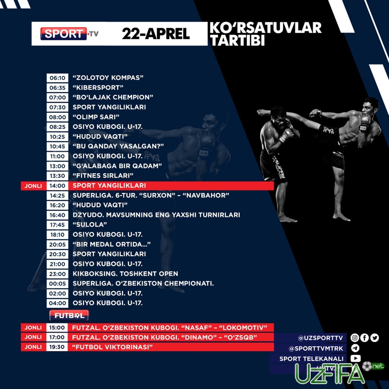 Sport va Futbol telekanallarida 22-aprel kuni futzal translyasiyalari bor