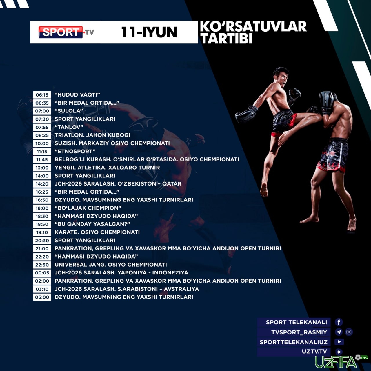 Sport va Futbol telekanallarining 11-iyun kungi ko‘rsatuvlar dasturi