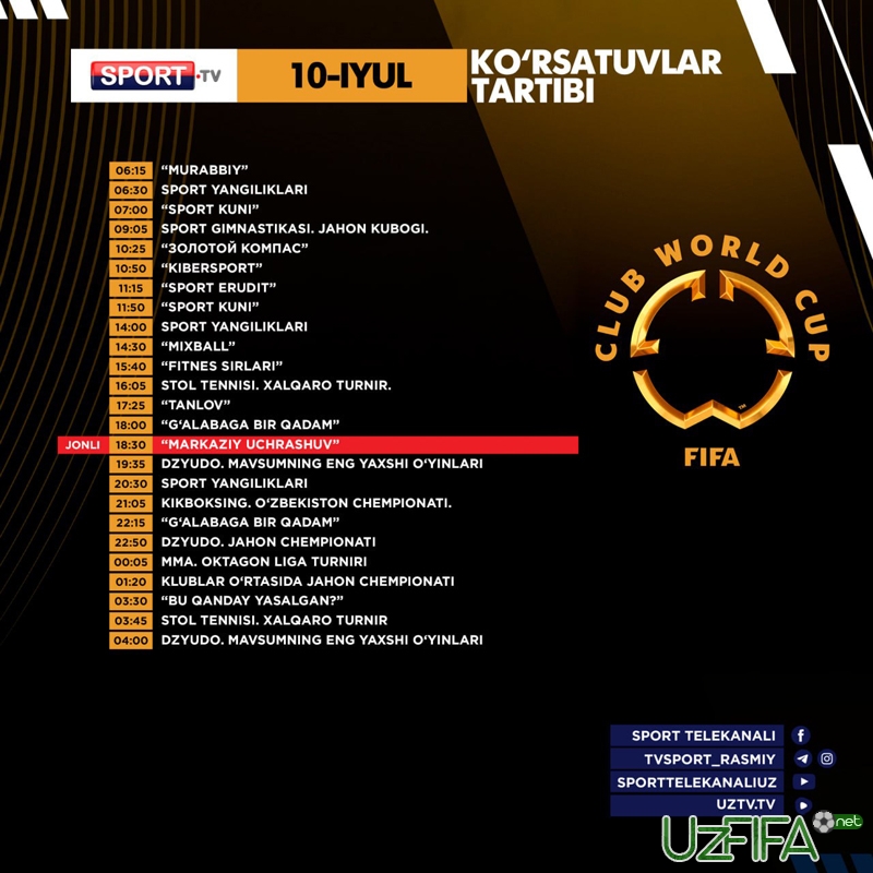 Sport telekanali 10-iyul kungi ko‘rsatuvlar dasturi