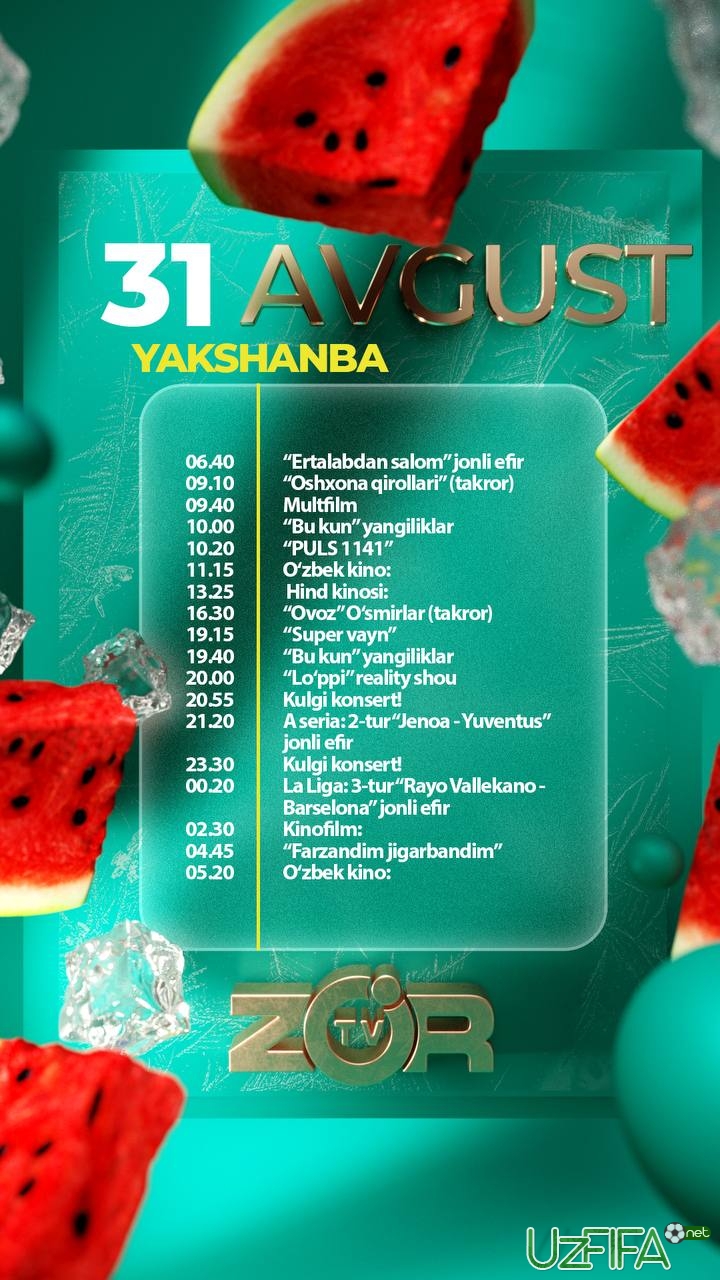 Zo'r TV telekanalida 31 avgust kuni 2 ta futbol translyasiyasi bor