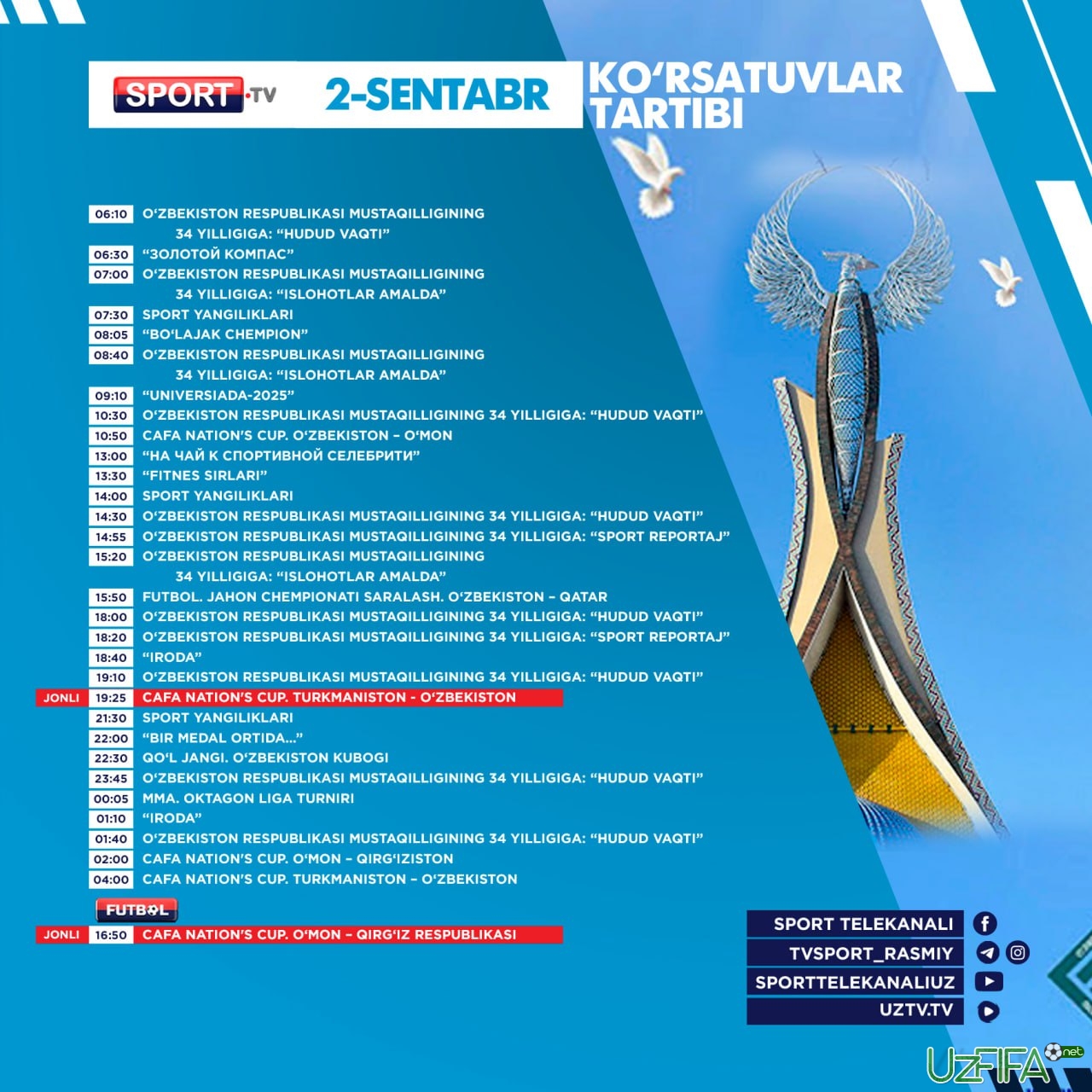 Sport va Futbol telekanallarida 2-sentyabr kuni 2 ta futbol translyasiyasi bor