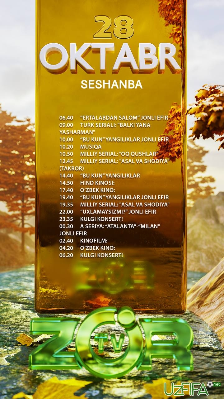 Zo'r TV telekanali 28-oktyabr kuni A seriyaning bitta o‘yinini jonli translyasiya qiladi