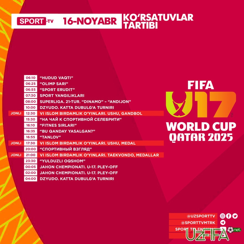 Sport va Futbol telekanallarida 16-noyabr kuni Islom birdamlik o‘yinlari translyasiyasi bor