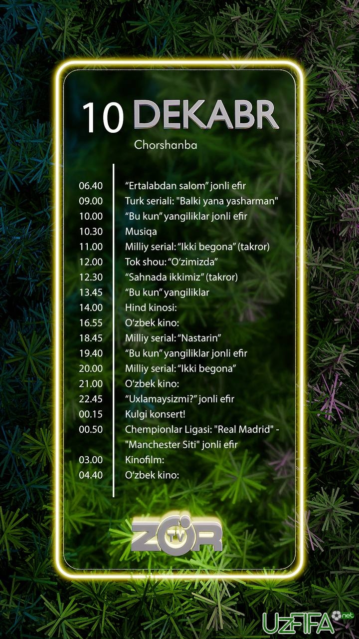 Zo'r TV telekanali 10-dekabr kuni «Real» - «Manchester Siti» o‘yinini translyasiya qiladi