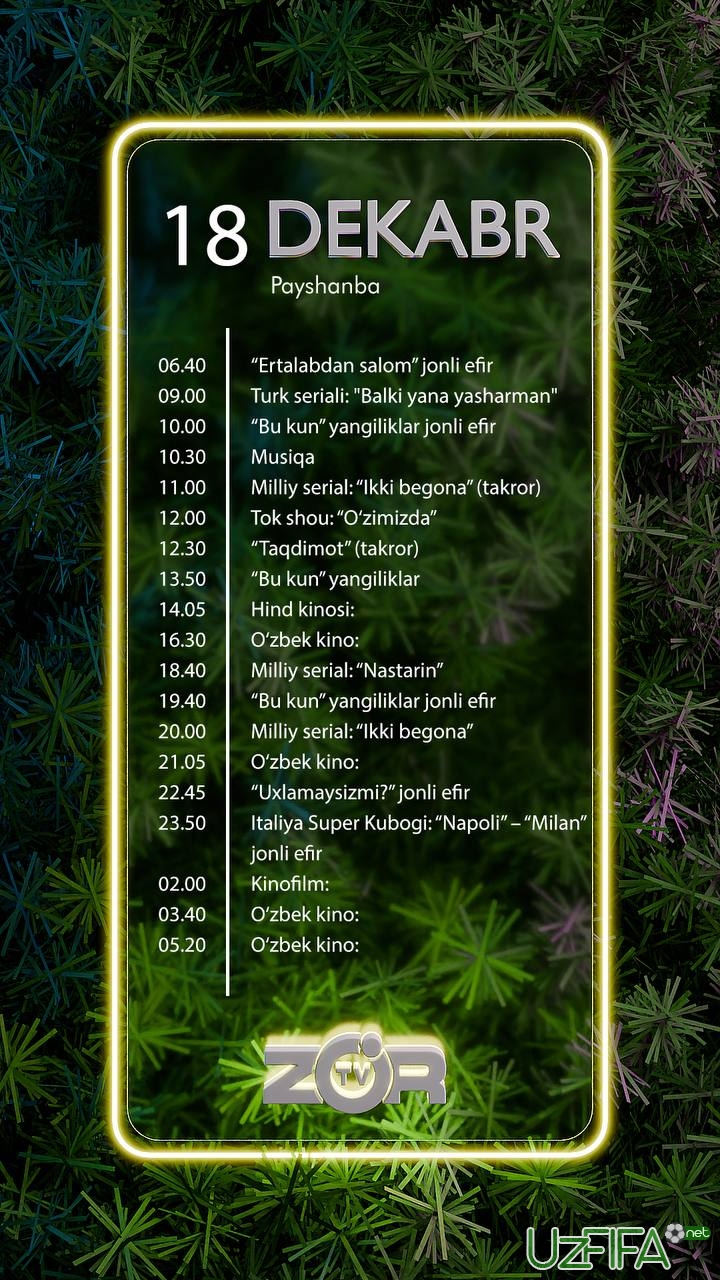 Zo'r TV telekanali 18-dekabr kuni Italiya superkubogi doirasida «Napoli» - «Milan» o‘yinini jonli translyasiya qiladi