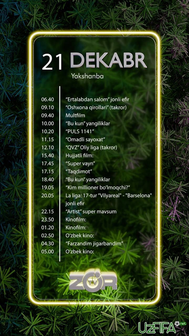 Zo'r TV telekanali 21-dekabr kuni «Vilyarreal» - «Barselona» o‘yinini jonli translyasiya qiladi