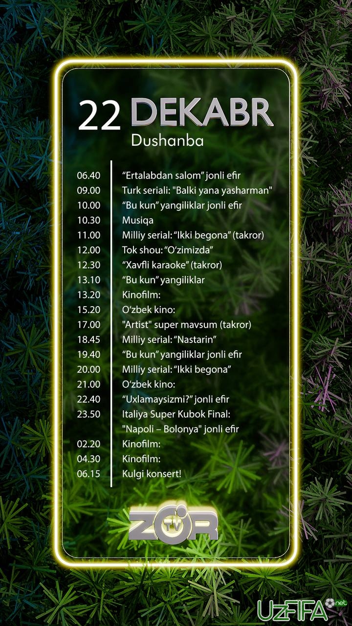 Zo'r TV telekanali 22-dekabr kuni Italiya superkubogi final o‘yinini translyasiya qiladi