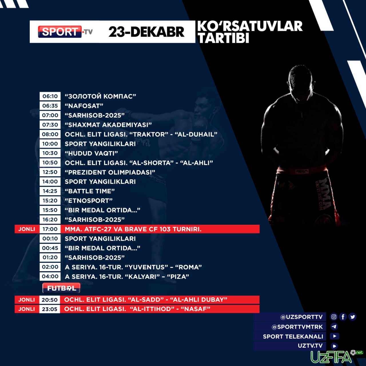 Sport va Futbol telekanallarida 23-dekabr kuni «Al-Ittihod» - «Nasaf» o‘yini translyasiya qilinadi