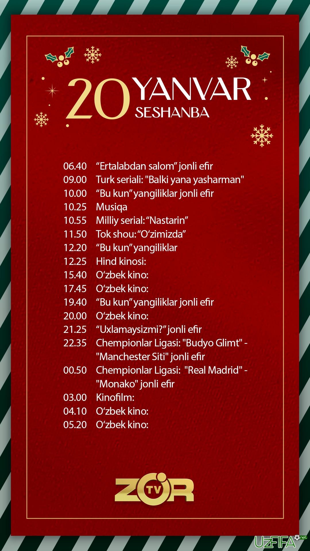 ZO'R TV bugun qaysi o‘yinlarni translyasiya qilishi ma’lum bo‘ldi