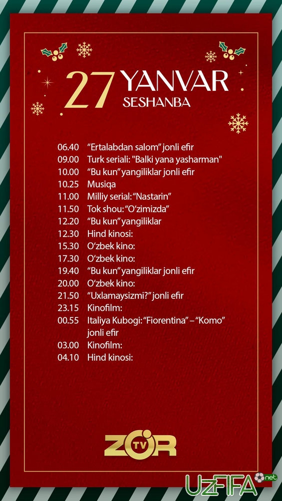 Zo'r TV telekanali 27-yanvar kuni Italiya kubogi bahsini jonli translyasiya qiladi
