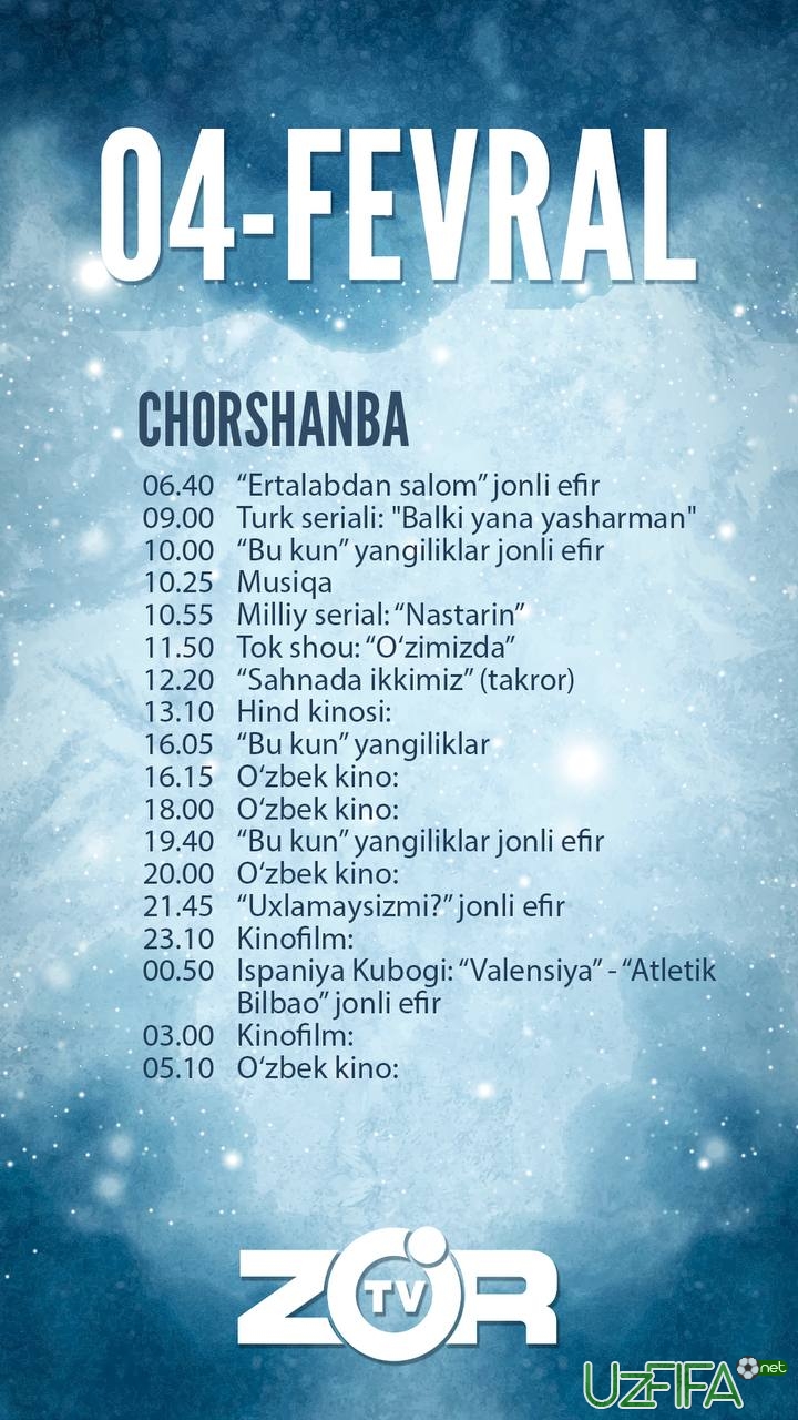 Zo'r TV telekanali 4-fevral kuni Ispaniya kubogi bahsini jonli translyasiya qiladi