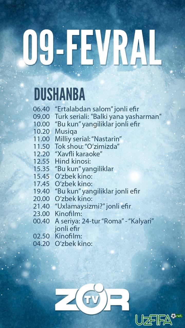 Zo'r TV telekanali 9-fevral kuni Italiya A seriyasining bitta o‘yinini translyasiya qiladi