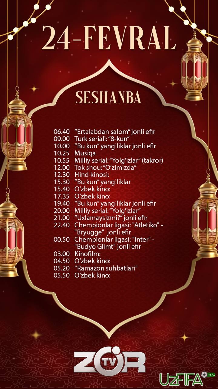 Zo'r TV telekanali 24-fevral kuni Chempionlar ligasining 2 ta o‘yinini jonli translyasiya qiladi