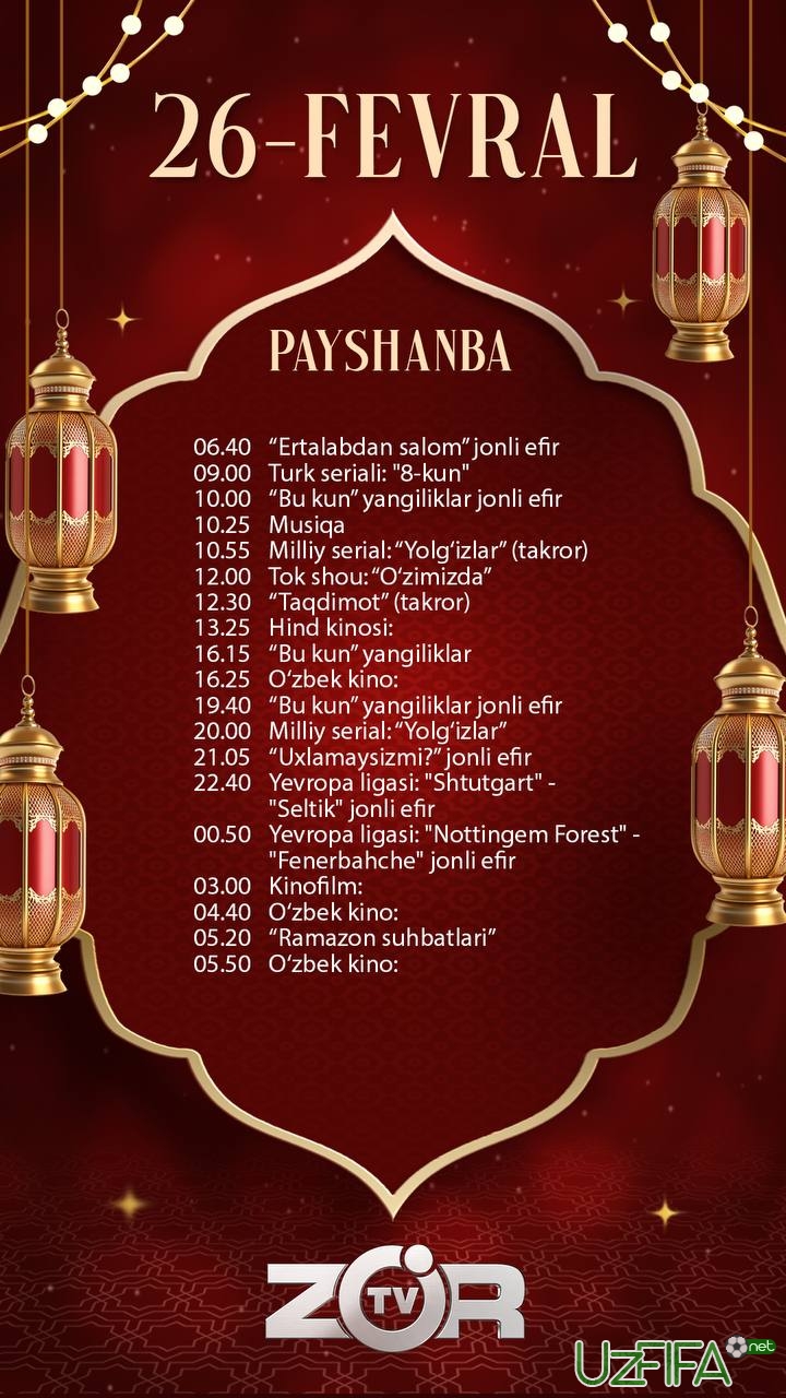 Zo'r TV telekanali 26-fevral kuni Yevropa ligasining 2 ta o‘yinini jonli translyasiya qiladi