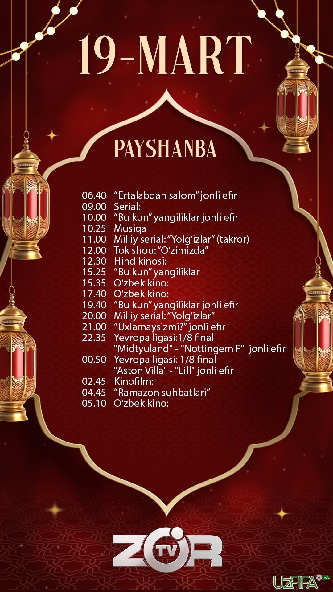 Zo'r TV telekanali 19-mart kuni Yevropa ligasining 2 ta o‘yinini jonli translyasiya qiladi