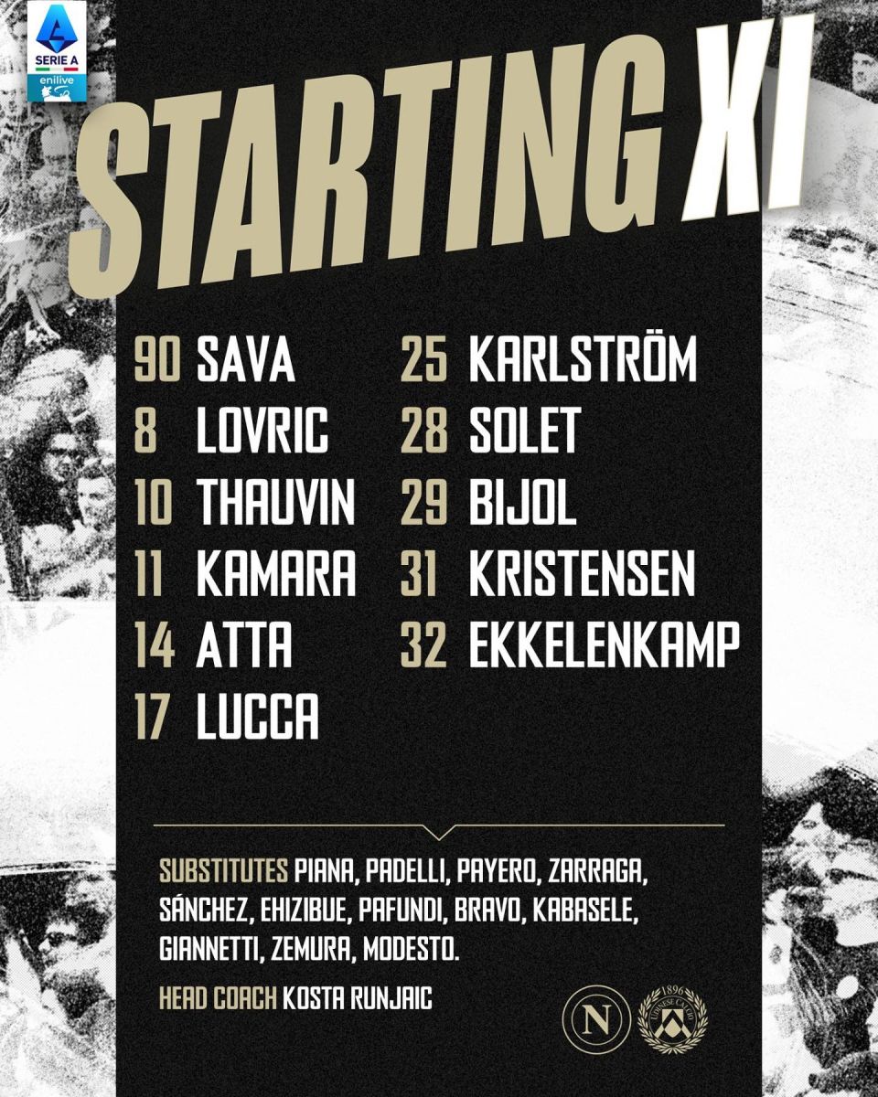 "Udineze": Sava, Kamara, Sole (Exizibue, 81), Biyol, Kristensen, Lovrich (Payero, 70), Karlstrem, Ekkelenkamp (Sarraga, 86), Toven, Atta (Bravo, 80), Lukka.