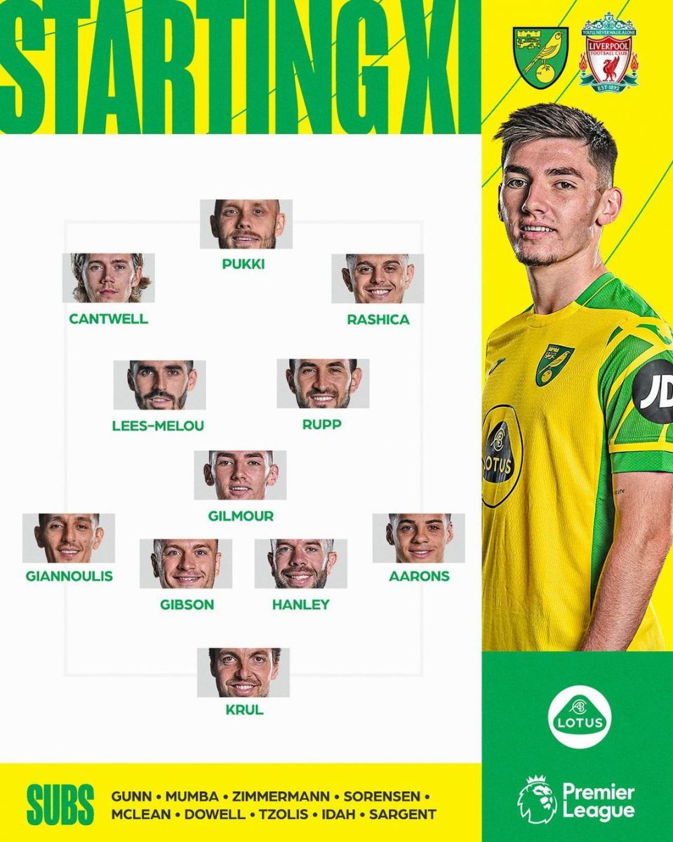 Norvich – Krul, Aarons, Xenli, Gibson, Yannulis, Rupp, Le-Melu, Gilmor, Rashica, Kentuell, Pukki.