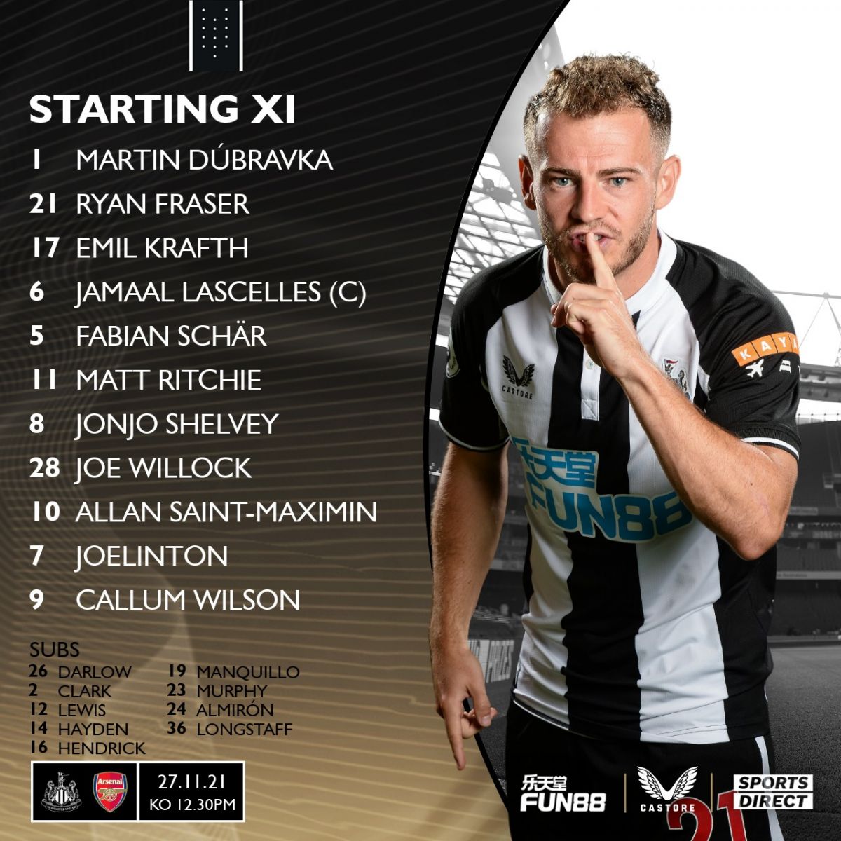 "Nyukasl": Dubravka, SHer, Lassels, Kraft, Freyzer, Ritchi, SHelvi, Uillok, Sen-Maksimen, Uilson, Joelinton.