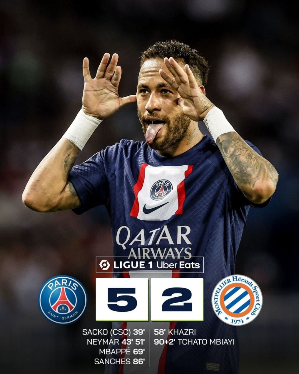 Gollar: 1:0 – 39, avtogol Sako, 2:0 – 43, penalti Neymar, 3:0 – 51 Neymar, 3:1 – 58 Xazri, 4:1 – 69 Mbappe, 5:1 – 87 Sanshesh, 5:2 – 90 Tshato.