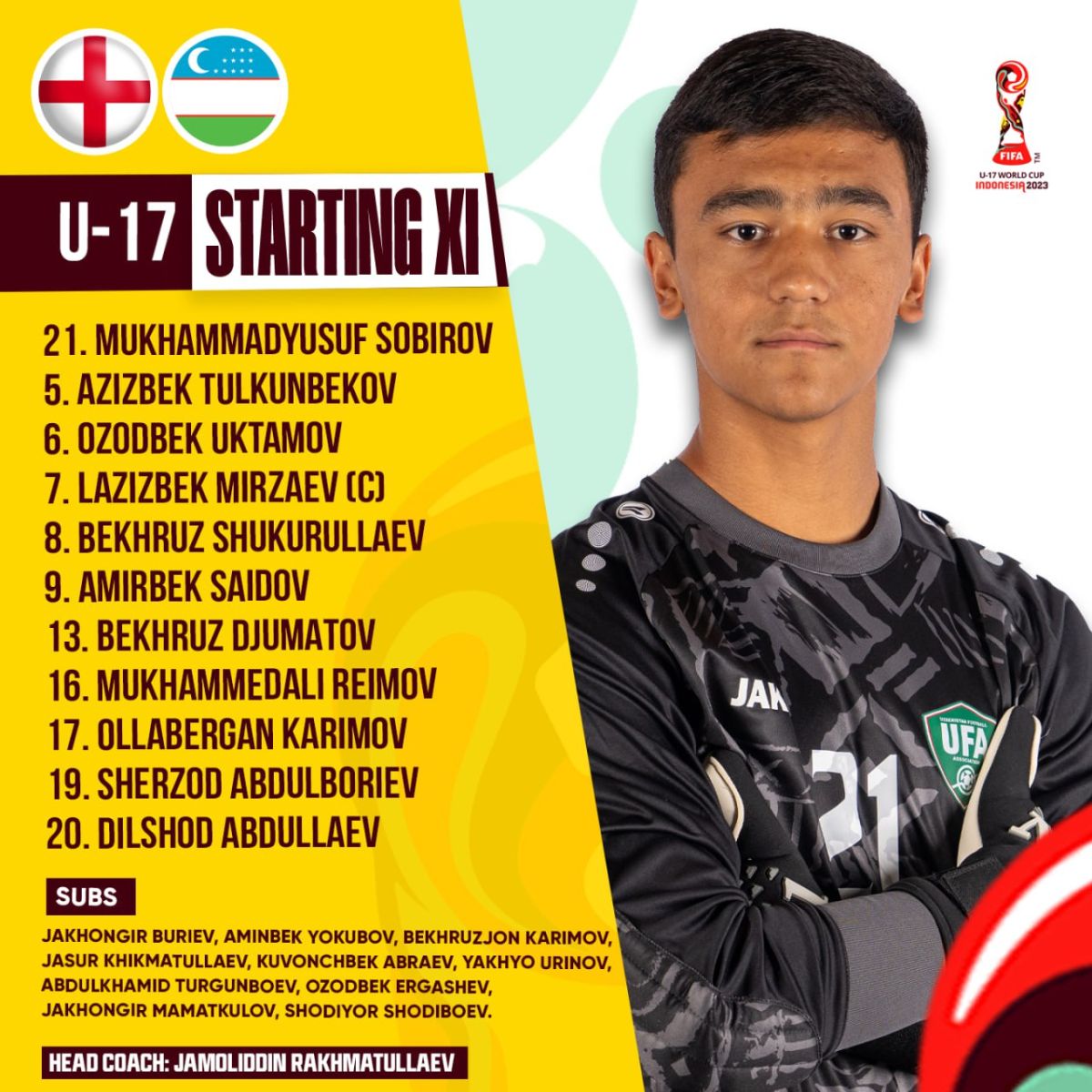 Ayni daqiqalarga kelib, terma jamoamiz ustozi Jamoliddin Rahmatullaev asosiy tarkibni elon qildi. Raqib jamoaning ham asosiy tarkibi malum bo'lib ulgurdi.