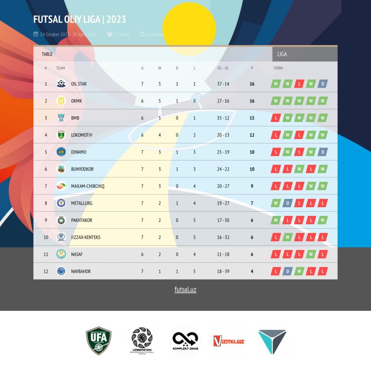 Futzal. Bugun to'rtinchi turning markaziy uchrashuvi bo'lib o'tadi 2023-12-06 09:05:01 / Kiritdi: BestMaster O'qilgan: 46 Bugun Jizzax shahrida futzal bo'yicha O'zbekiston Oliy ligasining to'rtinchi turning so'nggi kun uchrashuvlari bo'lib o'tadi. Bugun turnir jadvalida 2 va 3-pog'onasida ketayotgan BMB va OKMK o'zaro bahs olib boradi.Bugungi uchrashuvlar vaqti bilan tanishing:11:00 "Metallurg" - "Dinamo"13:00 "Oil Star" - "Maksam CHirchiq"15:00 OKMK - BMB17:00 "Lokomotiv" - "Nasaf" Teglar: futzal, bugun, tortinchi, turning, markaziy, uchrashuvi, bolib, otadi, ← OldingaOrqaga →