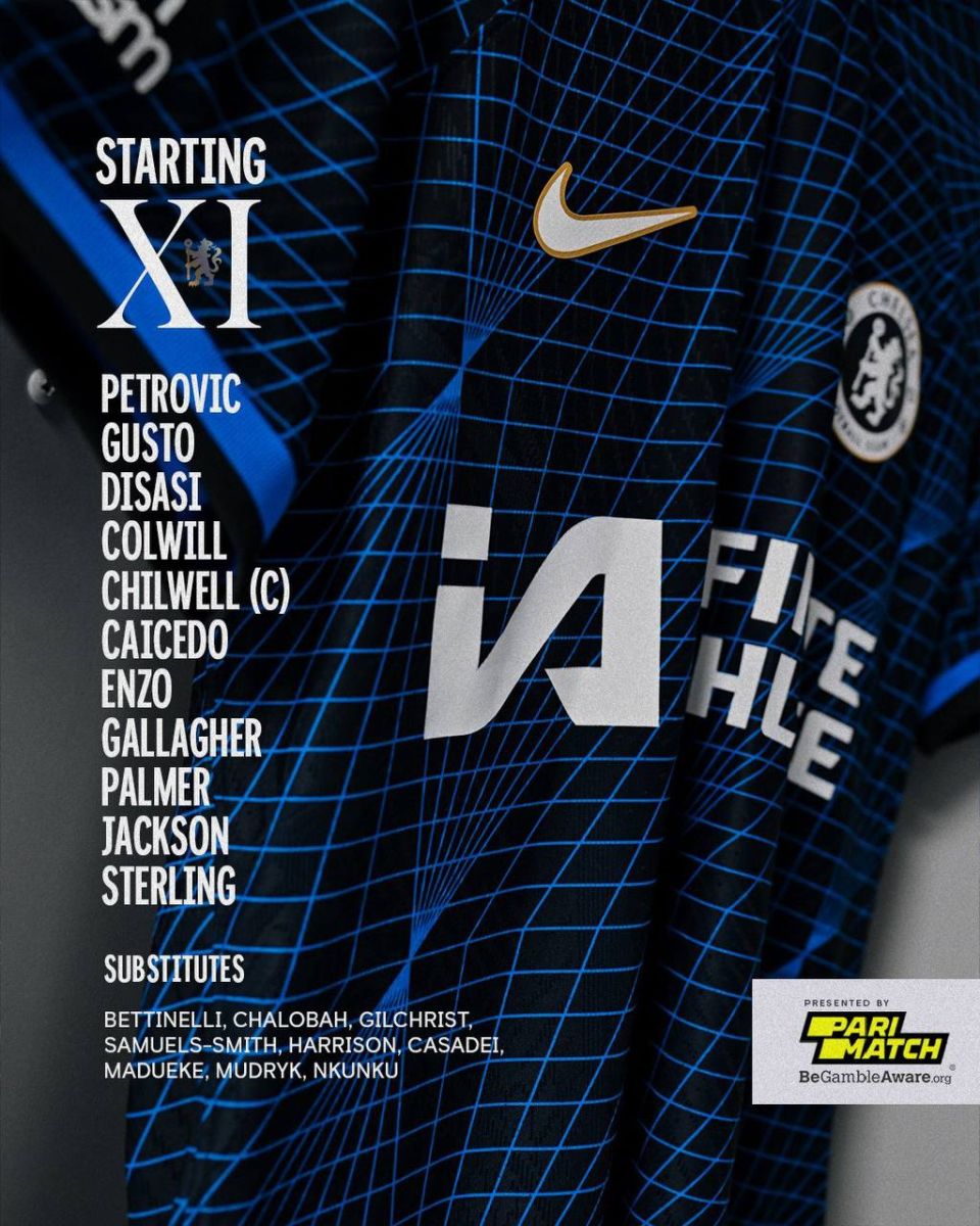 CHelsi – Petrovich, Gyusto, Disasi, Koluill, CHiluell, Gallaxer, Fernandes, Palmer, Kaysedo, Sterling, Jekson.
