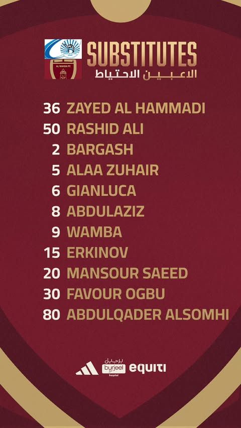"Al Vahda"ning o'zbekistonlik o'yinchisi Hojimat Erkinov o'yinni zaxiradan boshlaydi.